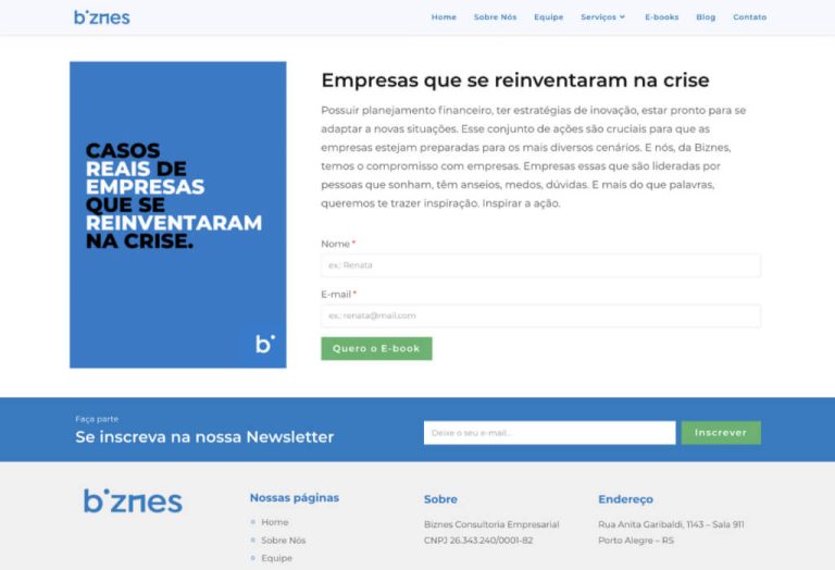 O projeto de desenvolver o site da Biznes Consultoria nos trouxe muita alegria. Primeiro porque o Bruno, proprietário, já conhecia nosso trabalho através do site da AGS. Segundo, porque ficamos sempre muito felizes com a entrada de novas histórias e projetos a serem produzidos.