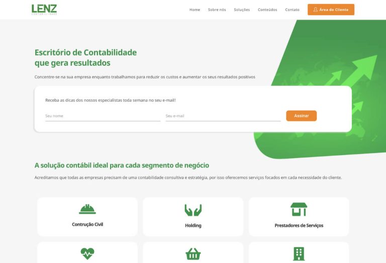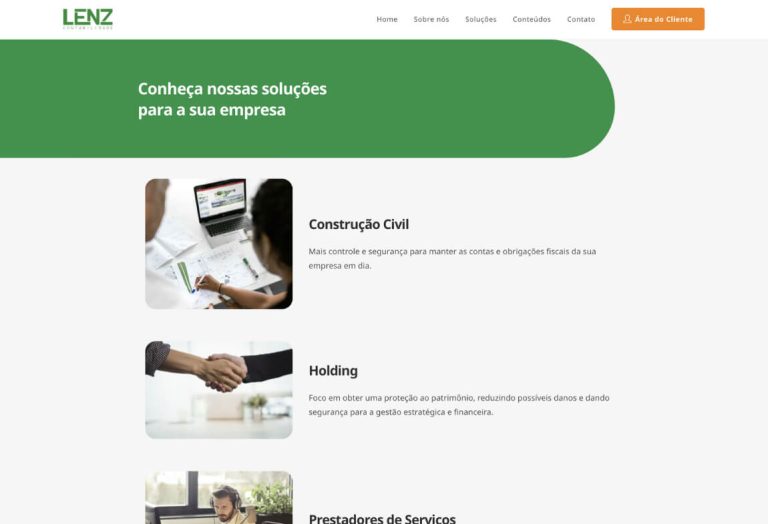 Para quem não conhece a a Contabilidade Lenz é um escritório de contabilidade focado em resultados, com mais de 30 anos de experiência e um baita equipe de profissionais especializados. Com muito potencial foi visto a necessidade de um novo site, que possibilitasse integração com ferramentas de marketing de forma mais facilitada. Mas principalmente, a autonomia para produção de conteúdos e atualização de informações.