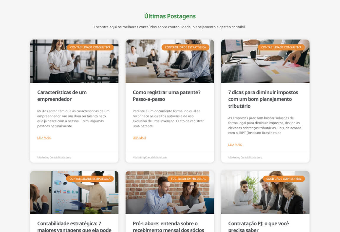 Para quem não conhece a a Contabilidade Lenz é um escritório de contabilidade focado em resultados, com mais de 30 anos de experiência e um baita equipe de profissionais especializados. Com muito potencial foi visto a necessidade de um novo site, que possibilitasse integração com ferramentas de marketing de forma mais facilitada. Mas principalmente, a autonomia para produção de conteúdos e atualização de informações.