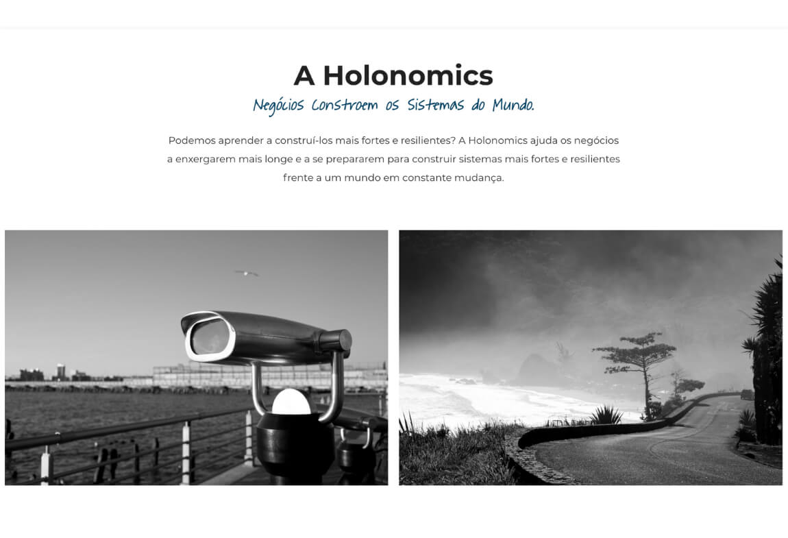 A Holonomics é uma empresa de consultoria de negócios de reconhecimento e relações internacionais. Por este motivo o site foi construído para as línguas português e inglês, atendendo a necessidade do cliente de se comunicar em ambas as línguas.