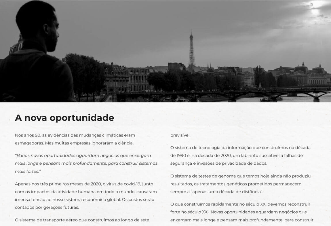 Com foco no design clean, com elementos deslocados para dar a sensação de novo. Além das fotos verticais e horizontais, dando o sentimento de galeria desejado.