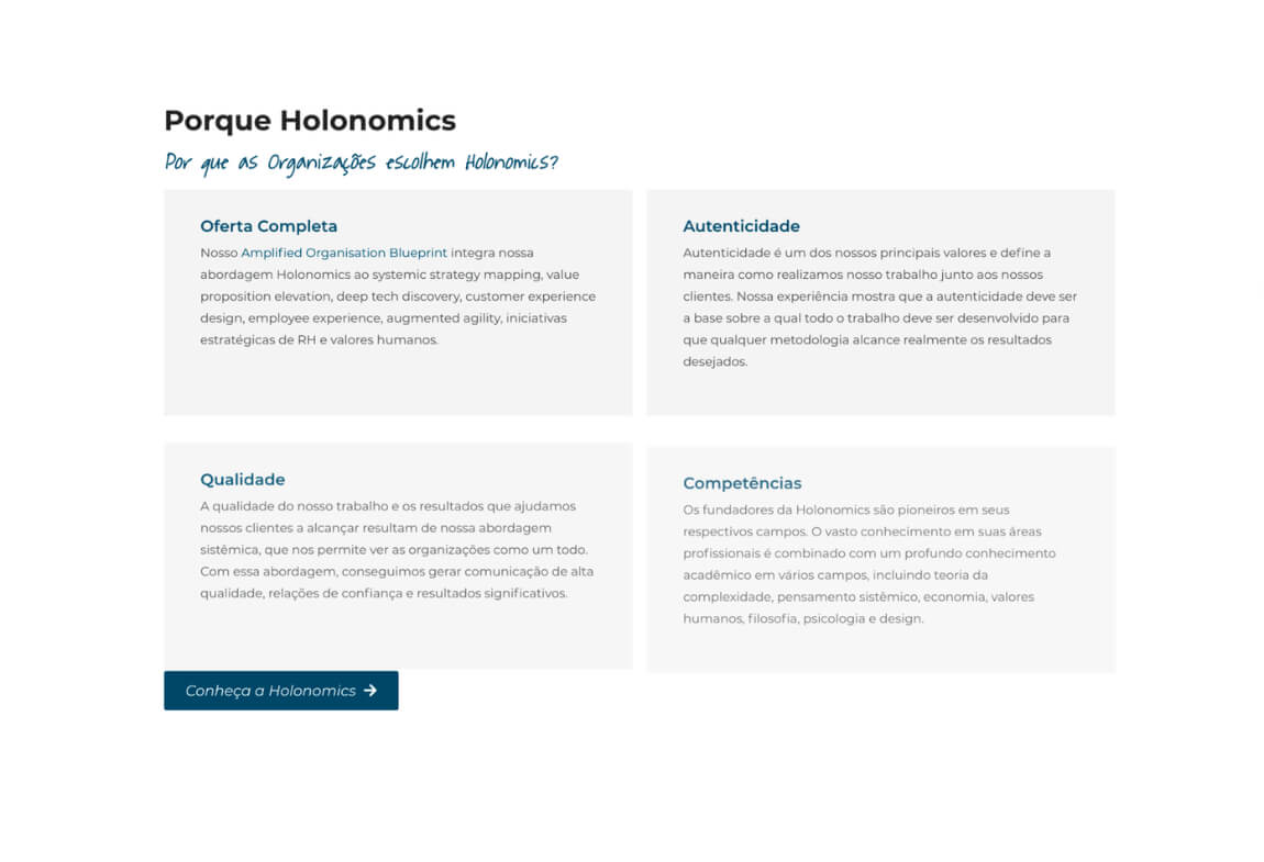 O site deveria demonstrar o que é e quem é a Holonomics