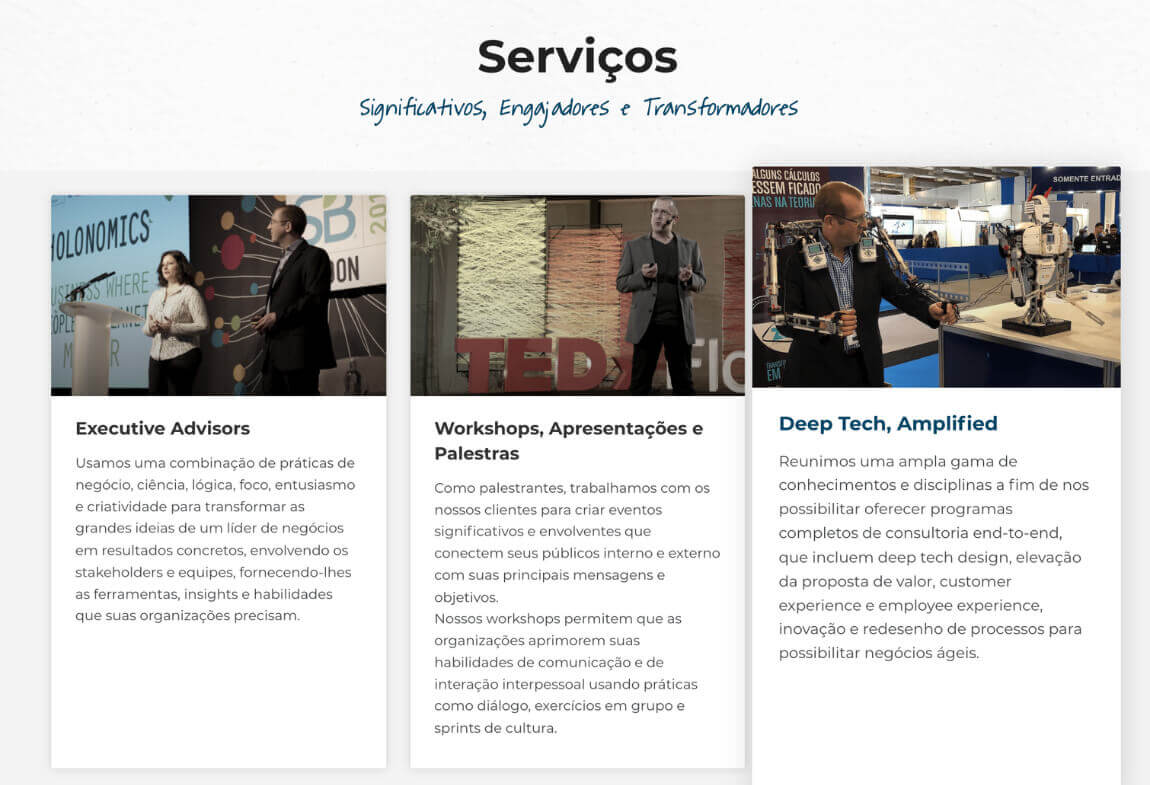 O pessoal da Alaska Marketing veio de parceria conosco para o criarmos o site institucional da Holonomics. O cliente tinha em mente dois objetivos principais para o seu site novo: