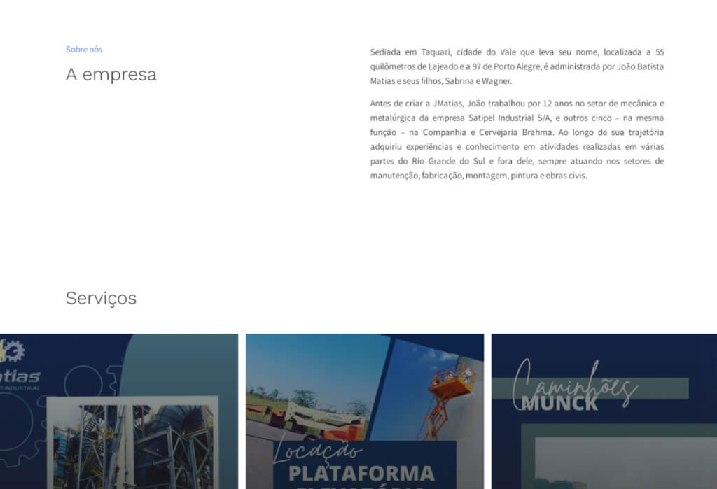 Para representar toda essa história e credibilidade no ramo, foi necessário a construção de um site sólido e digno desta marca. Foi feito um trabalho em conjunto com o cliente para explorar os pontos mais fortes da empresa no mercado.