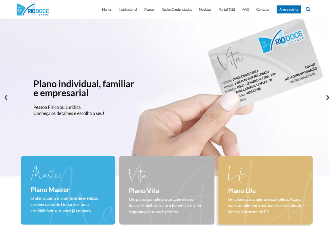 O site foi construído para transparecer o propósito como negócio associada a confiança e transparência que uma empresa de saúde precisa.