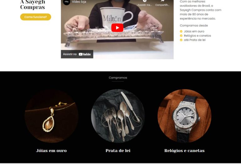 Ainda no ramo de joias, o site da Sayegh Compras vem para se tornar uma ponte facilitadora para pessoas que tem o interesse em vender suas joias e relógios. Com mais de 80 anos de experiência, eles vem para ampliar o seu posicionamento no digital e alcance de público.