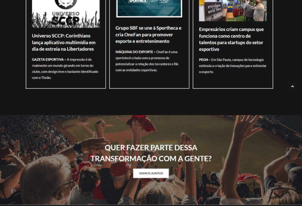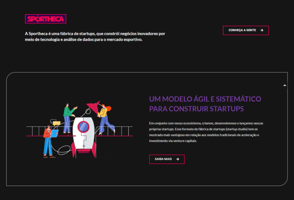 Com muita felicidade apresentamos o novo site da Sportheca. Um site com exploração visual mais segmentada, com imagens e ilustrações. A Sportheca é hoje uma fábrica de startups, que constrói negócios inovadores por meio de tecnologia e análise de dados com foco no mercado esportivo.